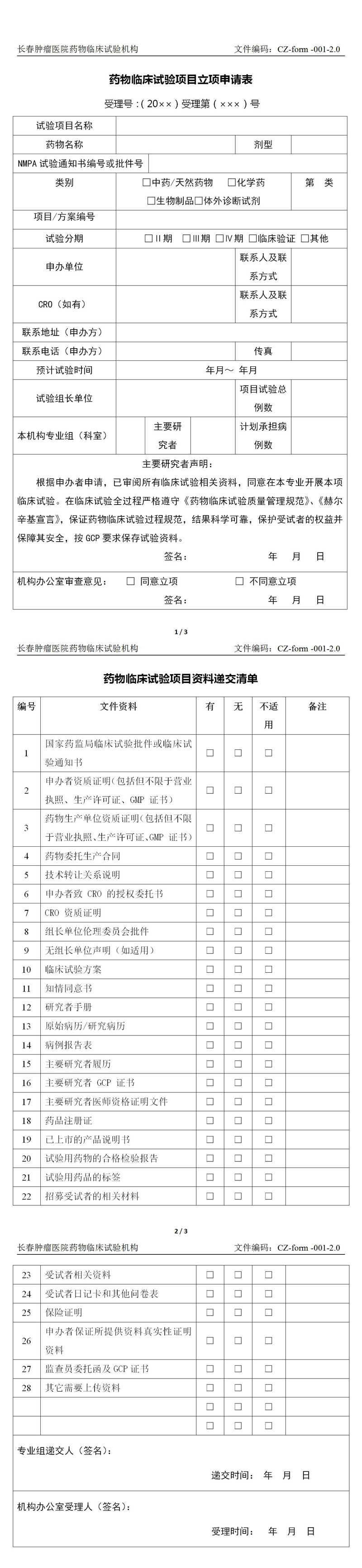 药物临床试验立项必备资料