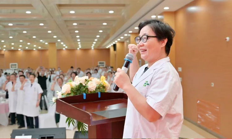 活动伊始,医疗院长赵庆国发表了热情洋溢的致辞。他回顾了过去一年里,医院全体医师在医疗工作中的辛勤付出与卓越贡献。面对复杂多变的肿瘤疾病,医师们凭借着精湛的医术、高尚的医德,为众多患者带来了生的希望。在与病魔的一次次较量中,他们从未退缩,始终冲锋在最前线,用实际行动诠释着 “敬佑生命,救死扶伤,甘于奉献,大爱无疆” 的职业精神。